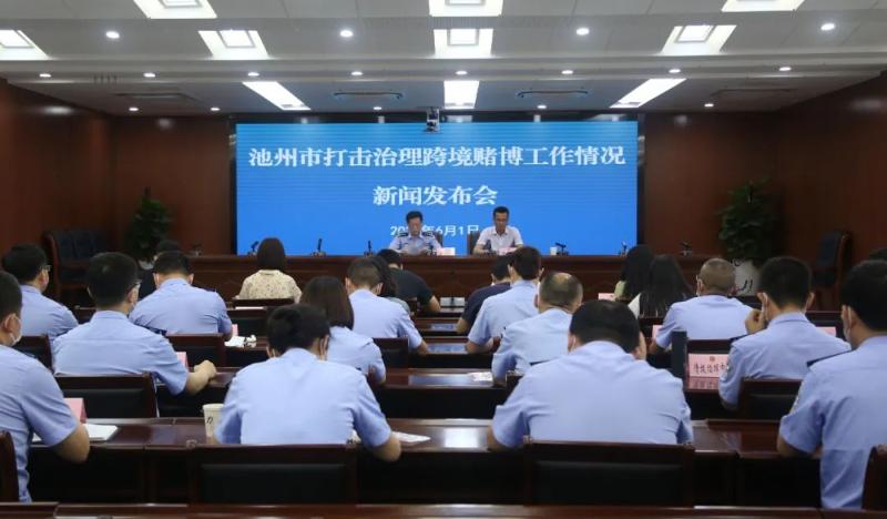 6月1日,池州市政府新闻办联合市公安局召开池州市打击治理跨境赌博工作新闻发布会。市公安局相关负责人向省、市媒体通报池州市打击治理跨境赌博工作开展情况,发布了典型案例,宣传了跨境赌博的严重危害,提醒广大人民群众自觉远离跨境赌博。