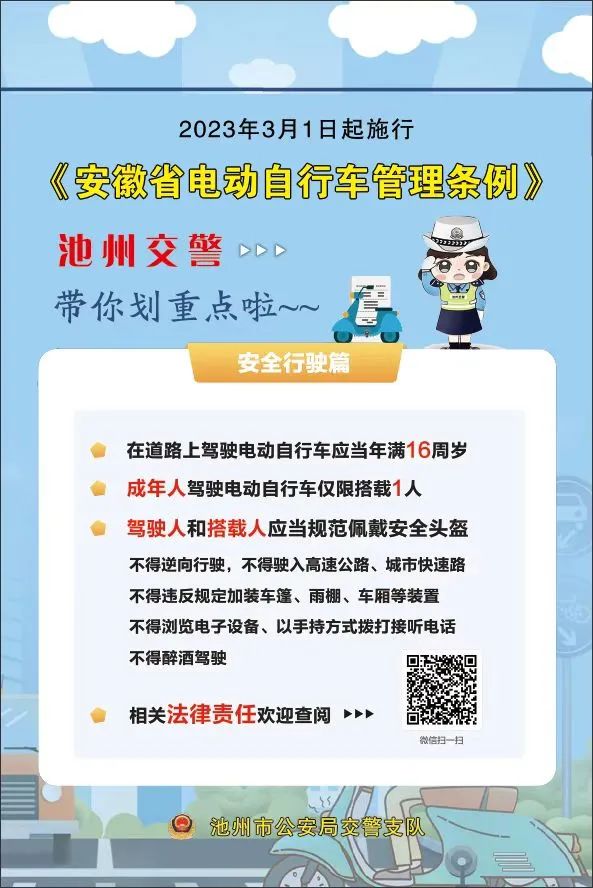 下一步,池州交警将继续深入销售企业、学校、商超等场所“抓住点”开展面对面宣传;有步骤、成体系“连成线”开展媒体宣传;市县联动、全域铺开“形成面”开展亮屏、响喇叭社会面宣传,扩大知晓率、守法率。