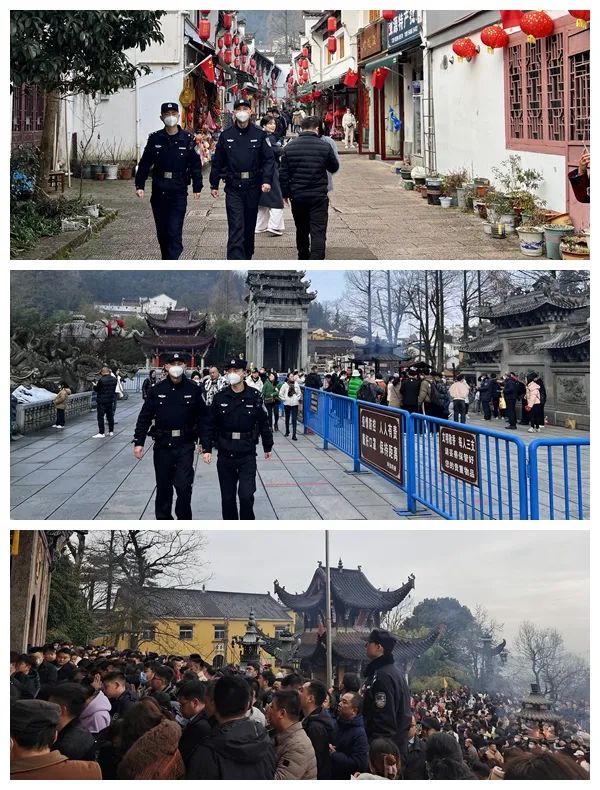 元宵佳节到,舞龙舞狮、猜灯谜各类民俗活动热闹非凡,池州市贵池区刘街青山庙会暨傩艺荟萃展演活动也如期而至,逛庙会、观傩戏,周边群众和慕名而来的游客络绎不绝。池州市公安局贵池分局组织警力做好现场秩序维护,确保群众玩得安全,逛得放心。