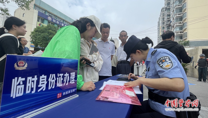 6月7日8时10分,合肥市公安局蜀山分局西园派出所民警办理五十中西校贵池路校区第一张临时身份证,及时安抚了考生情绪,确保考生顺利进入考场。(蒋星桐)