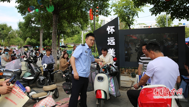 怀远县公安局将高考安保和“双提升”工作相结合,在考场外开展交通安全、反诈、扫黑除恶、法治、禁毒等各类宣传。(常宇柯)