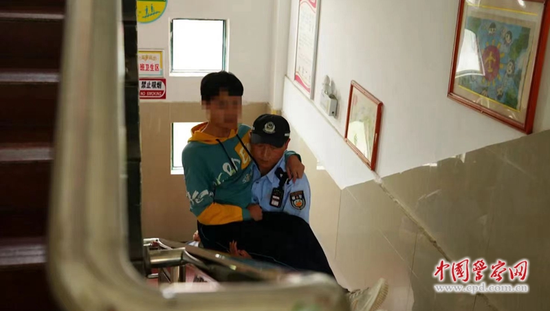 高考首日,六安市公安局金安分局帮助行动不便的考生顺利进入考场。(蔡诚)