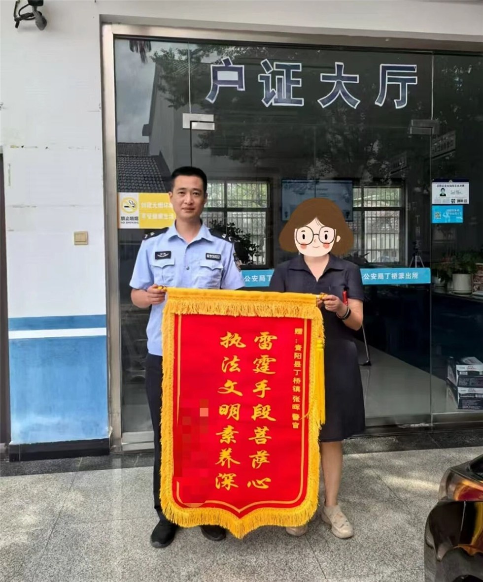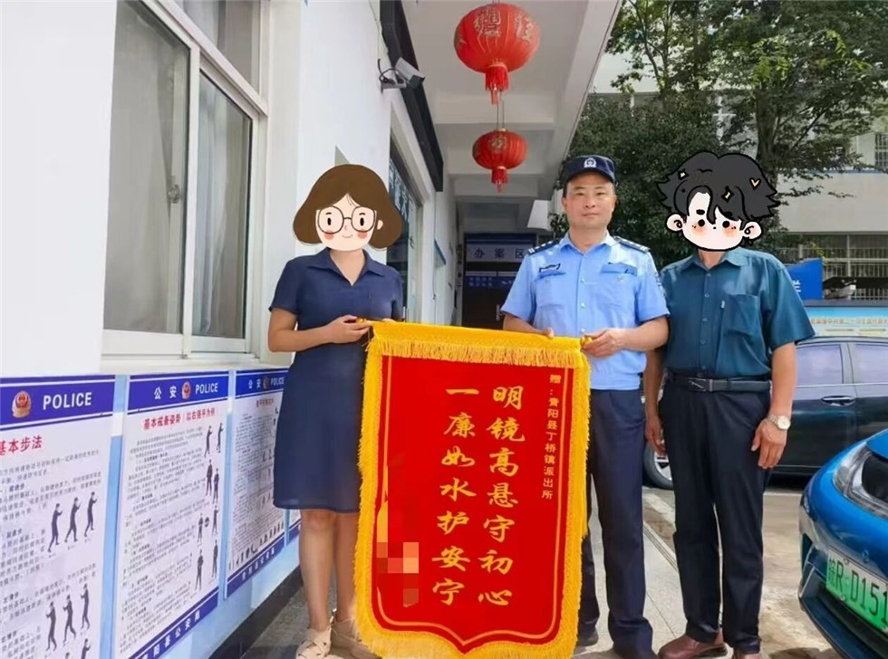 近日,青阳县丁桥镇某企业工作人员来到青阳县公安局丁桥派出所,将两面印有“明镜高悬守初心 一廉如水护安宁”“雷霆手段菩萨心 执法文明素养深”的锦旗送到民警手中,对民警耐心负责、执法为民的工作态度表示衷心感谢。