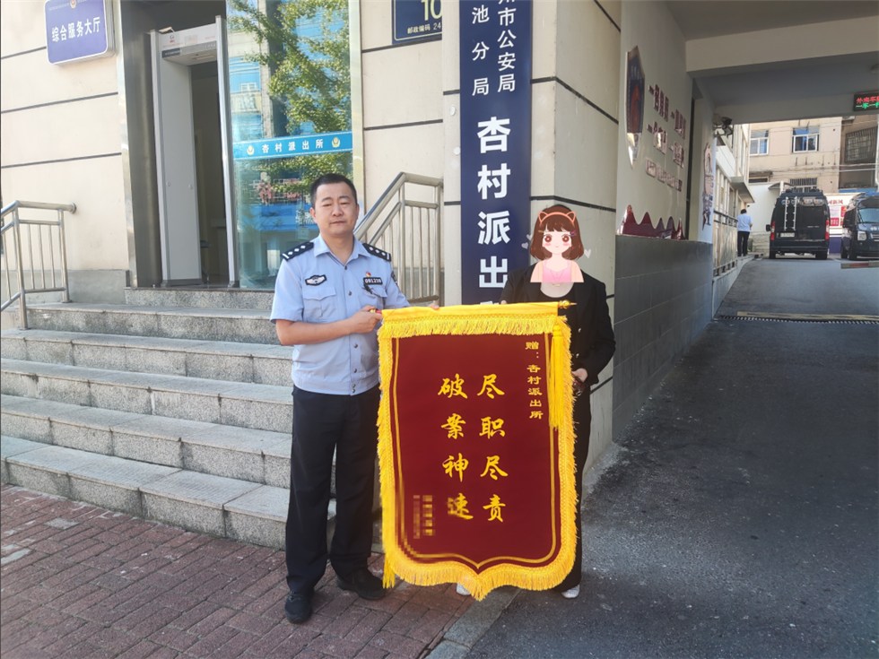 到案后,谈某对其盗窃商铺的犯罪事实供认不讳。目前,谈某已被警方依法刑事拘留,案件正在进一步办理中。事后,胡女士专程将一面印有“尽职尽责,破案神速” 的锦旗送至杏村派出所,对警方快速破案、追赃挽损表示感谢。
