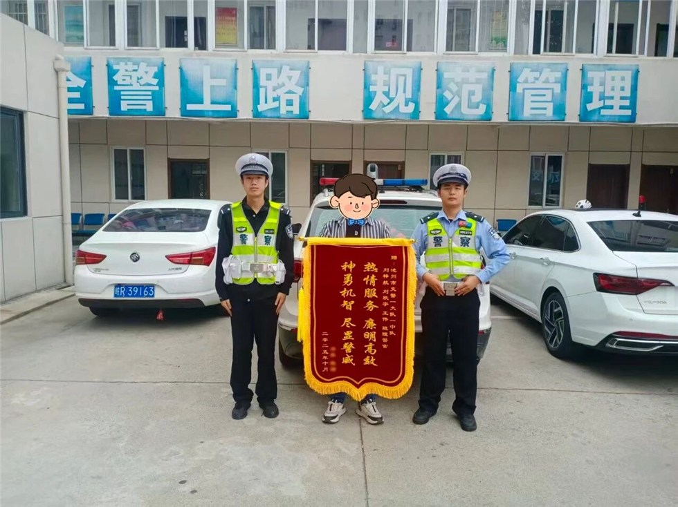 近日,池州市公安局交警支队一大队接连收到两面锦旗。特别的是,这两起获赞的事故处置中,都有两名新警的身影——2025级新警刘欣宇、刘梓航,虽上岗不久,但他们用认真负责的态度赢得了群众认可。