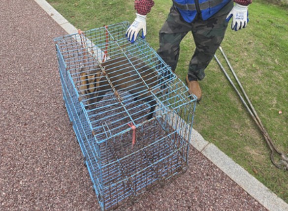 近日,青阳县公安局蓉城派出所接群众报警称,在公园池塘的石头围墙下,一只野生动物被困,需警方帮助。
