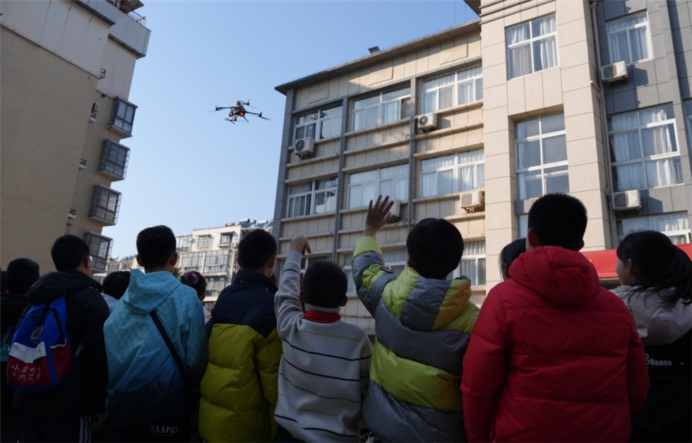 警用装备展示区里,无人机腾空而起,飞手精准完成悬停、高空喊话等动作,引得现场同学们惊叹连连。