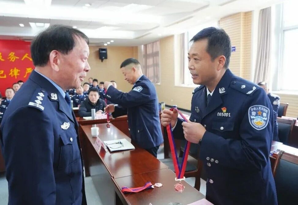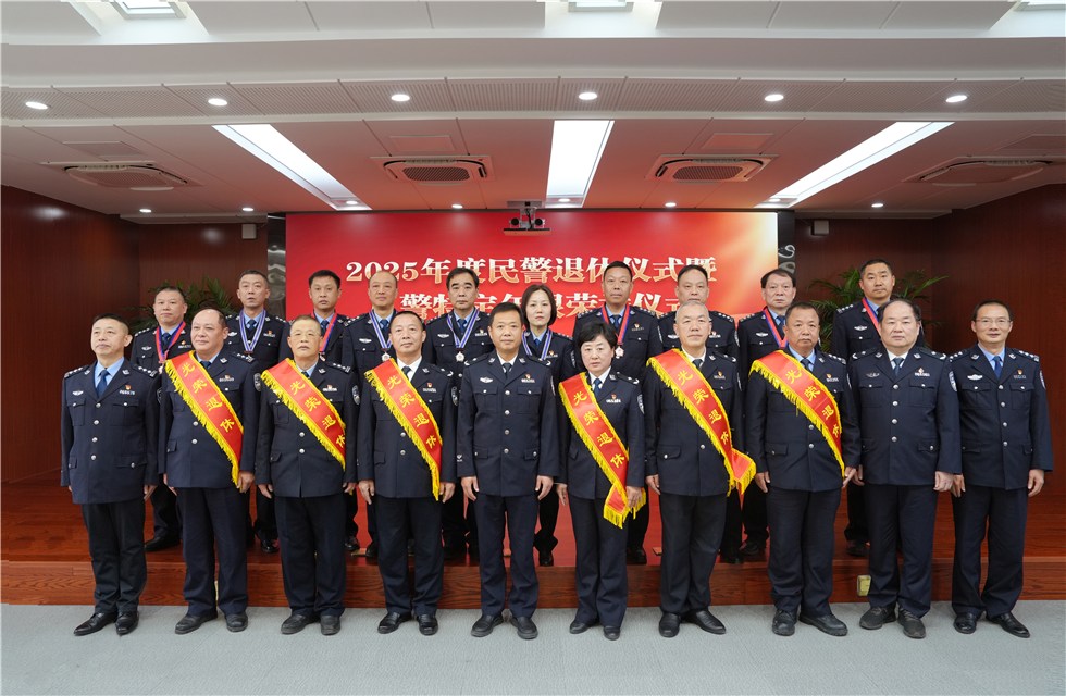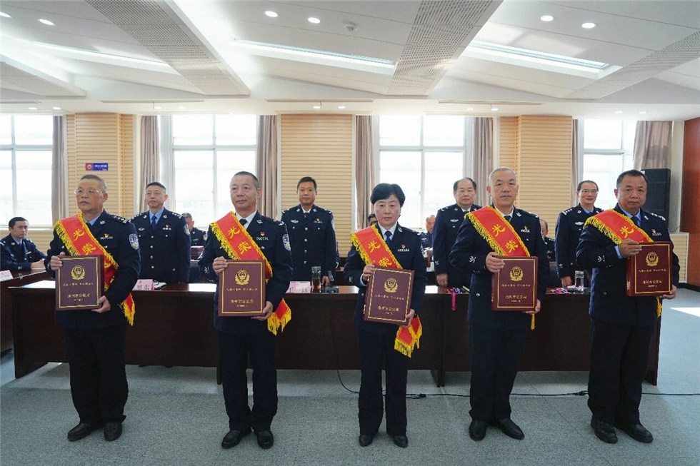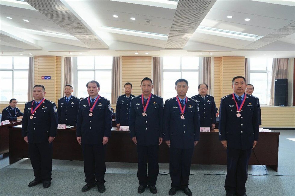 青丝白发,见证峥嵘岁月,韶华匆匆,不忘使命初心。仪式在庄严的国歌声中拉开序幕。与会领导为退休民警代表和从警特定年限民警代表分别颁发了从警纪念牌和荣誉纪念章,向他们致以节日的问候和崇高的敬意。