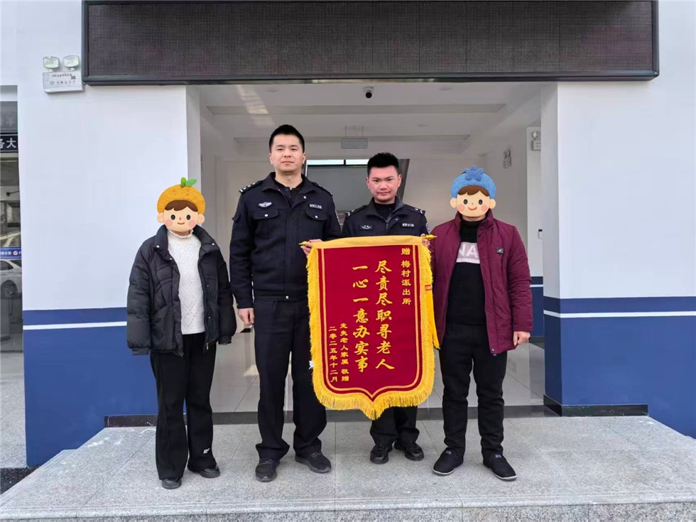 事后,张先生家属将一面印有“尽责尽职寻老人 一心一意办实事”的锦旗送到梅村派出所,对警方及时救助表示感谢。