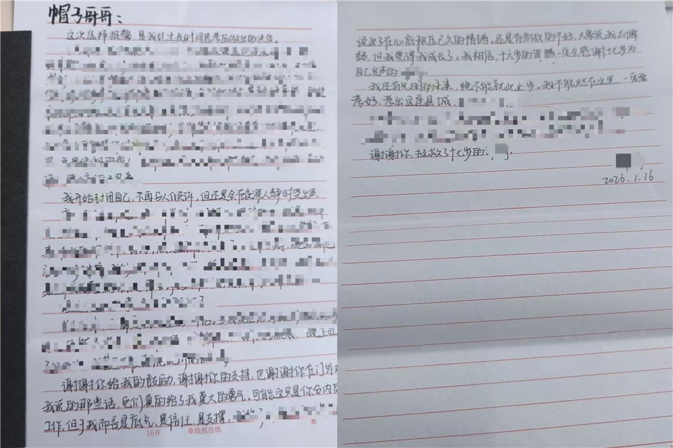 民警收到报警人的手写感谢信