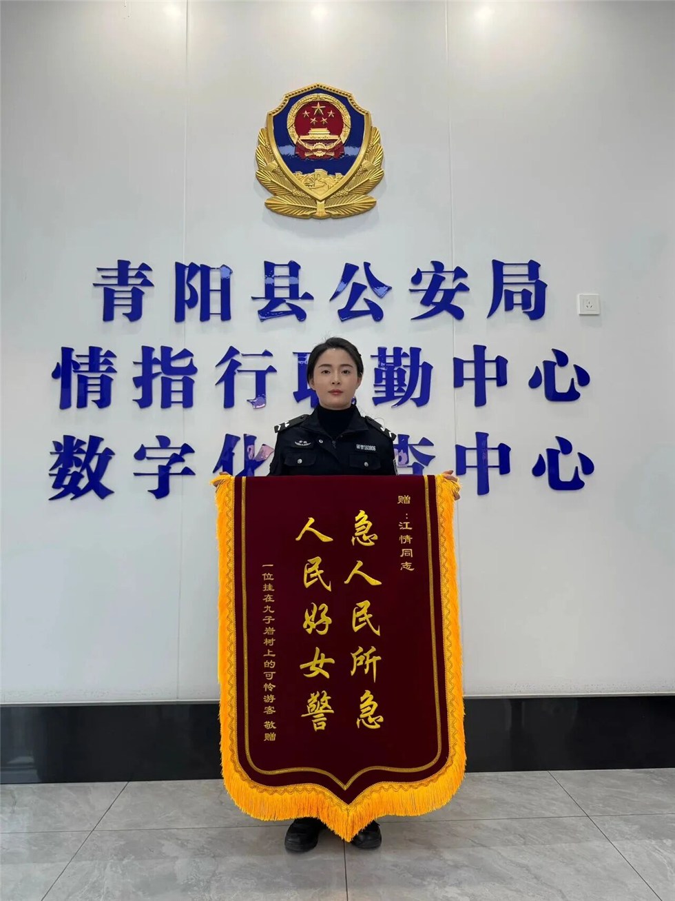 “急人民所急 人民好女警”的锦旗