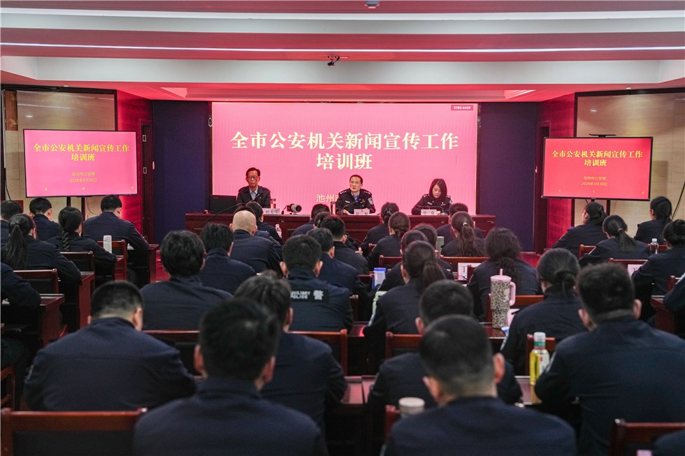 为进一步加强全市公安新闻宣传队伍专业化规范化建设,3月30日至31日,池州市公安局举办全市公安机关新闻宣传工作培训班。市公安局分管局领导出席开班式并作动员讲话,各县、分局及局直相关警种90余名宣传员、通讯员参加培训。