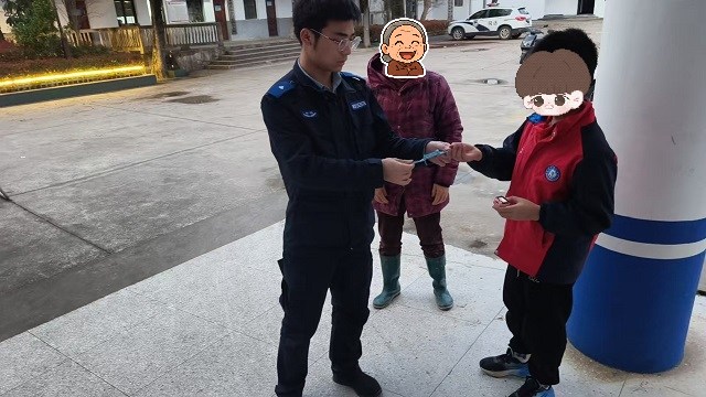 近日,东至县公安局木塔派出所执勤警力在辖区学校护学时,捡到一块“小天才”电话手表。正值放学高峰期,现场未能寻找到失主,执勤警力便将手表带回派出所妥善保管。不久,手表来电,民警核实后确认对方为失主家属。随后,学生在家属陪同下赶到派出所取回手表,家属对警方认真负责的态度连连致谢。