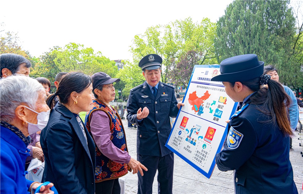 ▲九华山风景区公安局组织民警、辅警开展普法教育活动,通过现场讲解、发放资料、互动问答等方式,向群众普及国家安全法律知识,筑牢全民安全防线。