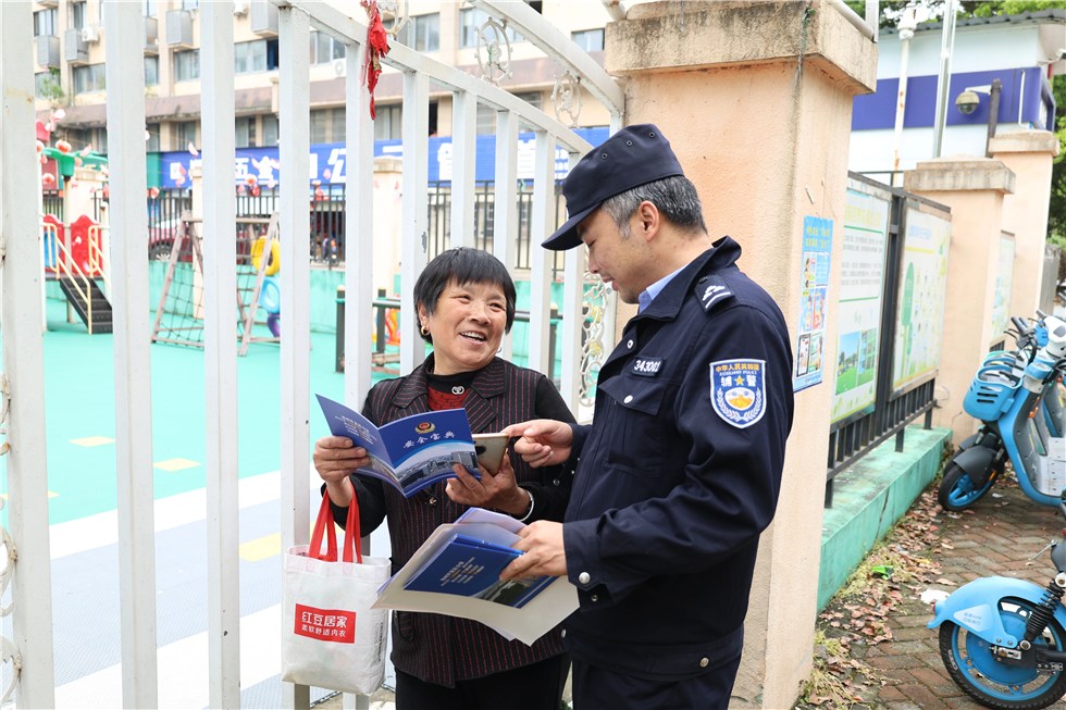▲开发区分局联合平天湖社区,深入社区与辖区幼儿园开展综合性安全宣传。民警、辅警与社区工作人员围绕反恐、反诈、防火防盗、高空抛物、文明养犬、反家暴等内容,通过发放资料、现场讲解、以案说法等形式,向居民和师生普及安全知识。